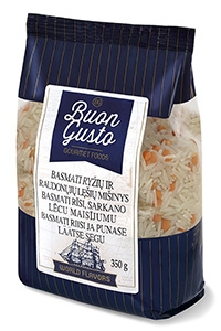 "Buon Gusto" mišiniai, kruopos ir ankštiniai minkštoje ir kt. pakuotėje. Košės indeliuose
