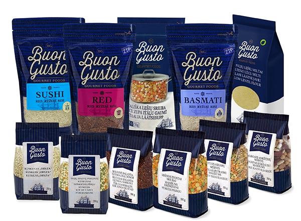 • "Buon Gusto" mišiniai, kruopos ir ankštiniai minkštoje ir kt. pakuotėje. Košės indeliuose